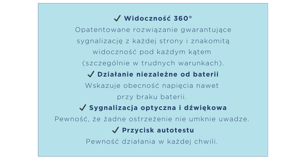 Dzięki wyraźnej sygnalizacji optycznej i dźwiękowej, zgodności z międzynarodowymi normami oraz konstrukcji dostosowanej do pracy w trudnych warunkach, stanowią podstawowe wyposażenie ekip technicznych, służb sieciowych i monterów.