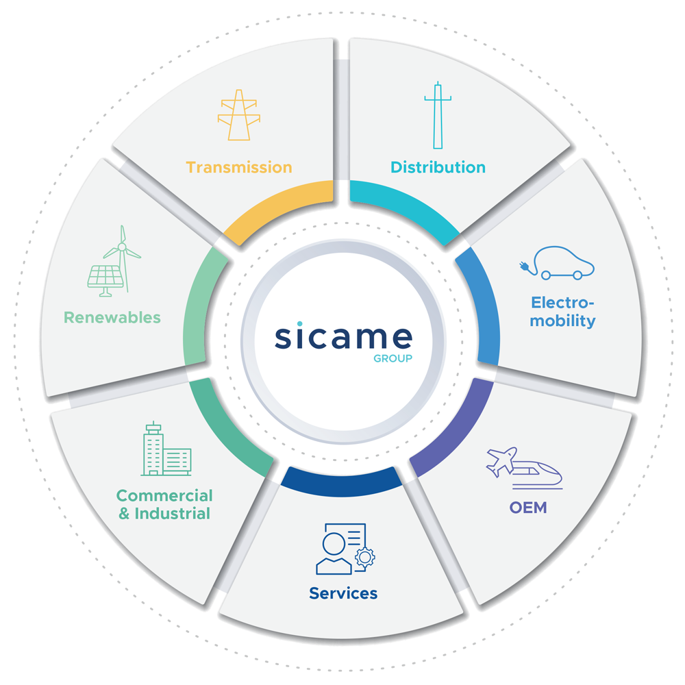 Grupa SICAME specjalizuje się w produktach i usługach związanych z przesyłaniem i dystrybucją energii elektrycznej, odnawialnych źródeł energii, elektromobilnością, urządzeniami bezpieczeństwa i zastosowaniami przemysłowymi.