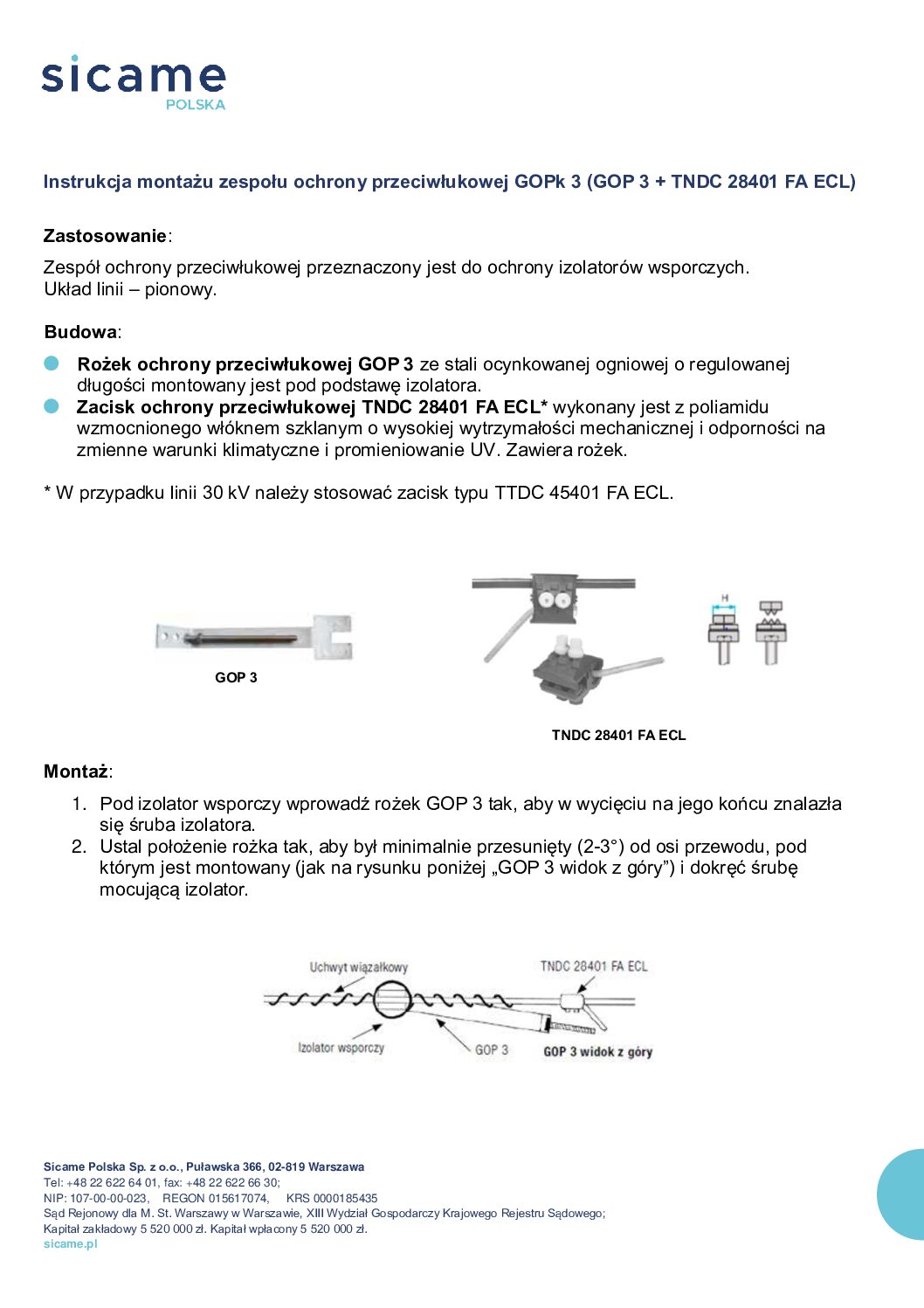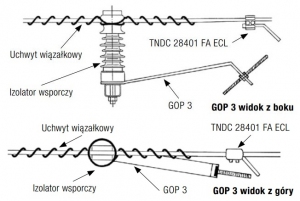 - Rożek GOP 3 o regulowanej długości montowany pod podstawę izolatora