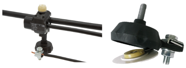 | H | Przewód typu P – giętki miedziany o przekroju 10mm² w izolacji o długości 700 mm z końcówką oczkową Ø 8 mm do łączenia z zaciskiem uziomowym. |