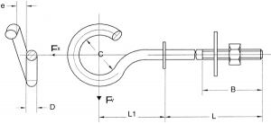 | d | podkładka | D | B | L | L1 | C | e | Fx | Fy | |