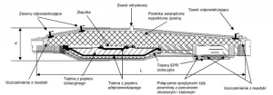 • MUFA PRZEJŚCIOWA: połączenie żyły powrotnej z pancerzem ołowianym i stalowym za pomocą sprężyn o stałej sile docisku, zabezpieczone mastyką i taśmą EPR, chroniące przed penetracją żywicy w to połączenie