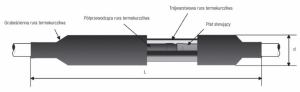 - Odtworzenie izolacji mufy za pomocą obkurczonego trójwarstwowego prefabrykatu termokurczliwego pełniącego funkcję: wysterowania pola, odtworzenia izolacji i ekranu półprzewodzącego