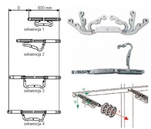 Określenie znamionowej elastyczności f urządzenia DAC OMEGA jest konieczne do zapewnienia jego właściwej pracy; „F” stanowi funkcję maksymalnego dopuszczalnego naprężenia przewodu (T), która z kolei jest funkcją ustawienia słupa krańcowego jak również obciążenia pionowego (Q), poprzecznego (H) i wzdłużnego (L).